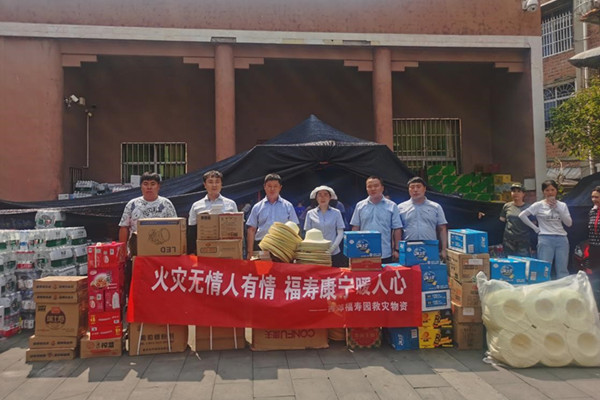 近日,重庆气温连日高居40℃以上,山火四起。8月24日至25日,西郊福寿园本着“以人为本、文化为根”的企业宗旨,联合重庆市璧山区民政局开展“火灾无情人有情、福寿康宁暖人心”公益慰问活动。